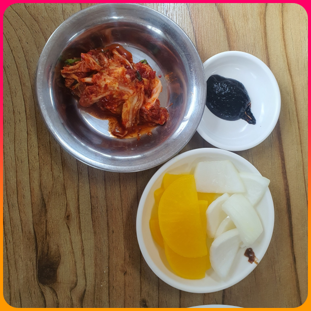 중간에 김치, 단무지, 양파가 셀프 리필 가능합니다.