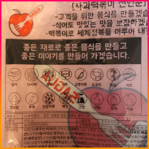 주문한 내역을 확인해 보면 사과 떡볶이는 밀떡으로 만들어져